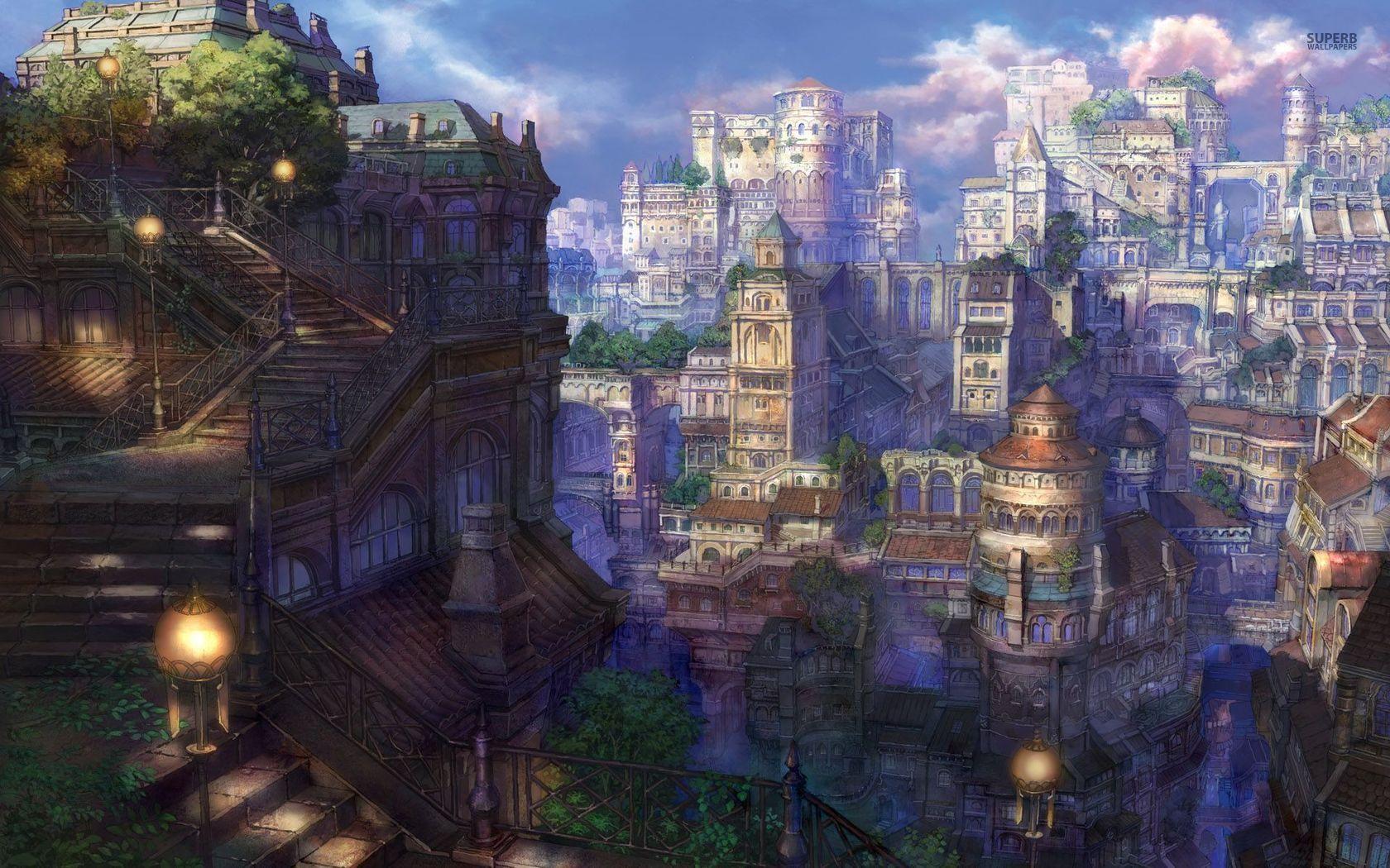 anime fantasy sky village landscape park dragon tower amusement clock clouds fountain mythology screenshot wallpapers wallhere