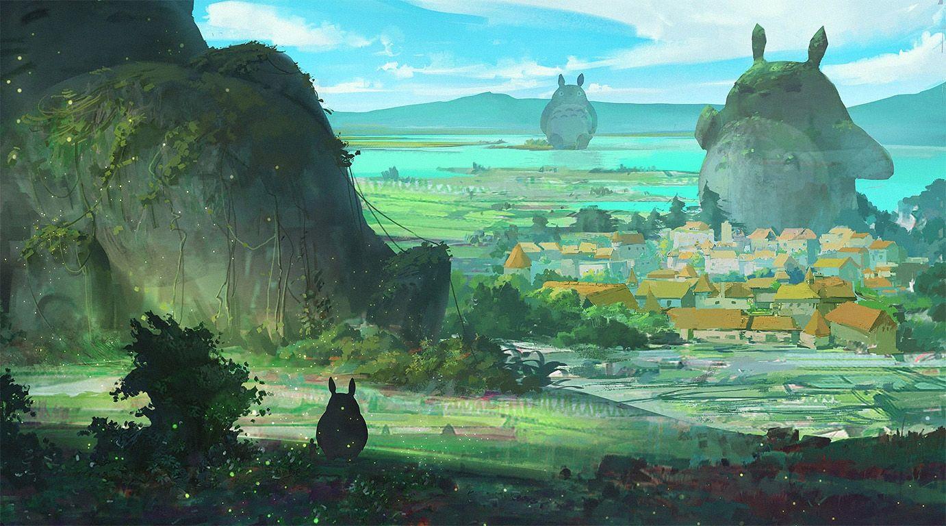 village anime wallpaperaccess totoro mountain painting wallpapers